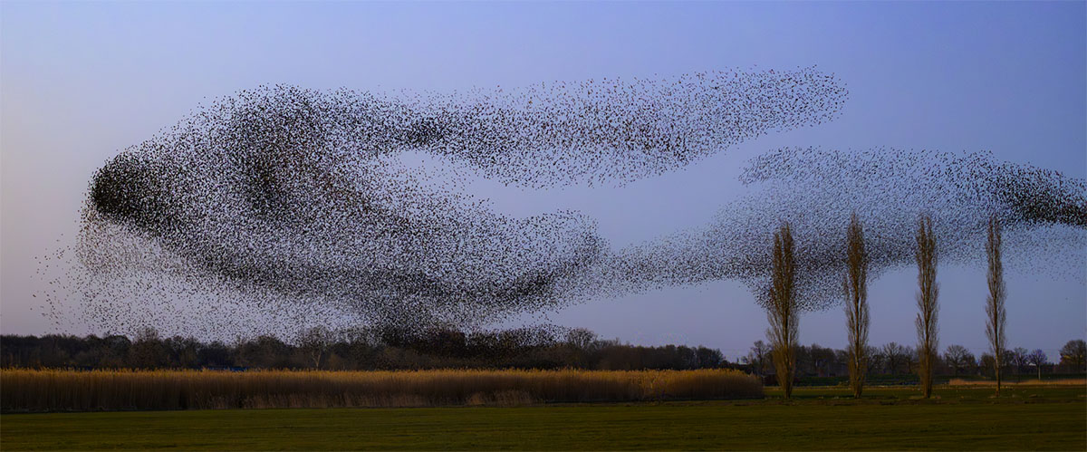 szarańczy, ptaków stadnych (szpaków, gołębi, gęsi,