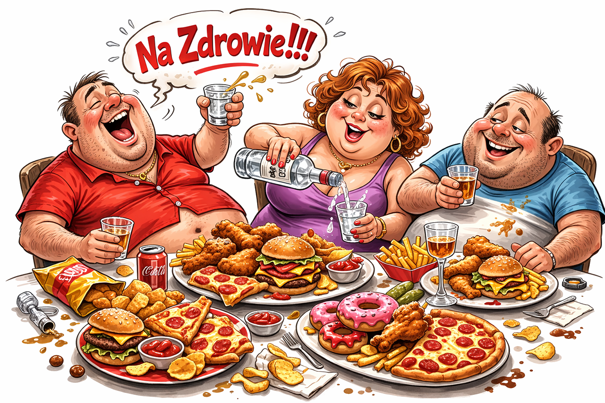 nadwyżka kalorii). Przyspiesza starzenie metaboliczne i